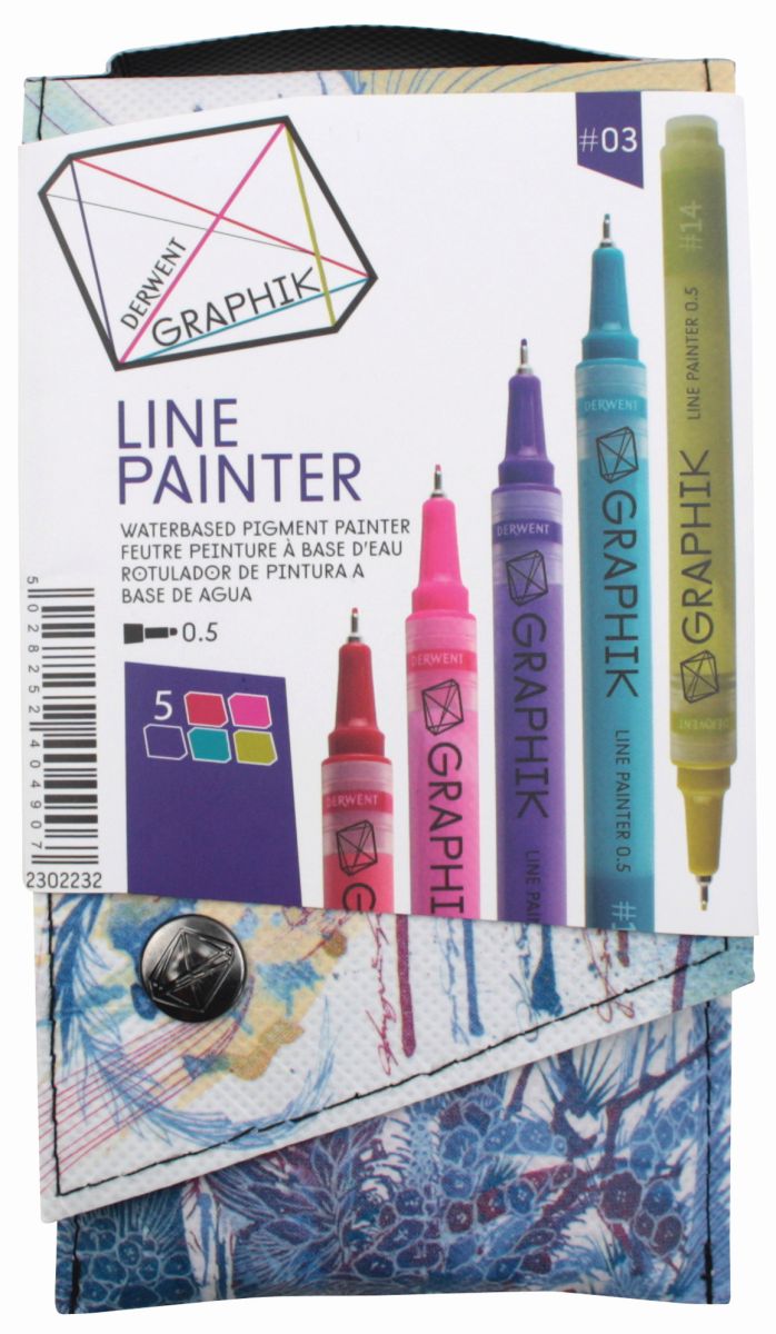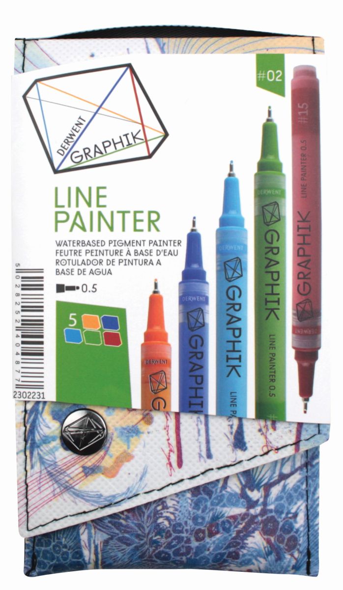 Alle Farben des Derwent Graphik Line Painters aufgeteilt in 4 Sets mit einem Preisvorteil gegenüber dem Kauf von den jeweils 5 einzelnen Linern.